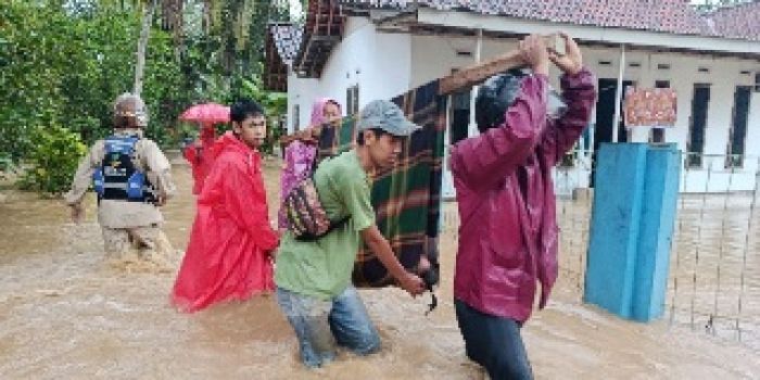 Laporan resmi per Selasa (17/2/2026) pukul 09.00 WIB menyebutkan, kejadian dipicu hujan berintensitas tinggi di wilayah hulu sungai yang menyebabkan tanggul jebol dan aliran sungai meluap ke permukiman serta area persawahan.