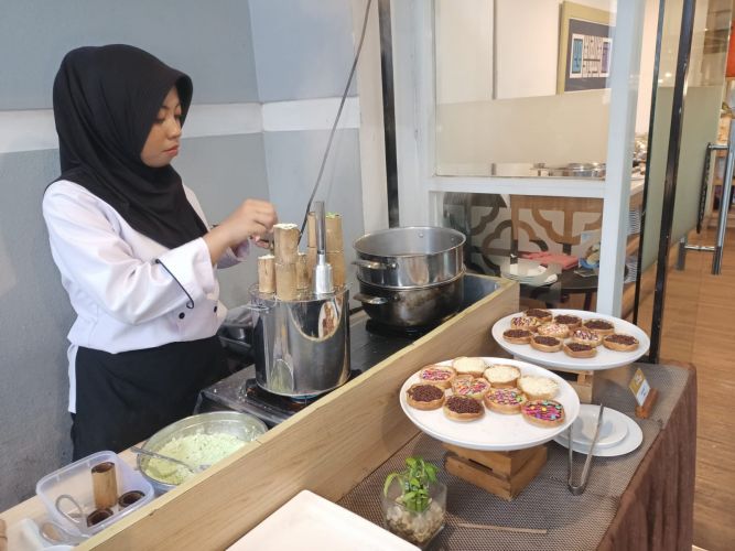 Selain itu, tersedia pula live cooking station yang memungkinkan pengunjung melihat langsung proses memasak sejumlah menu yang disajikan.
