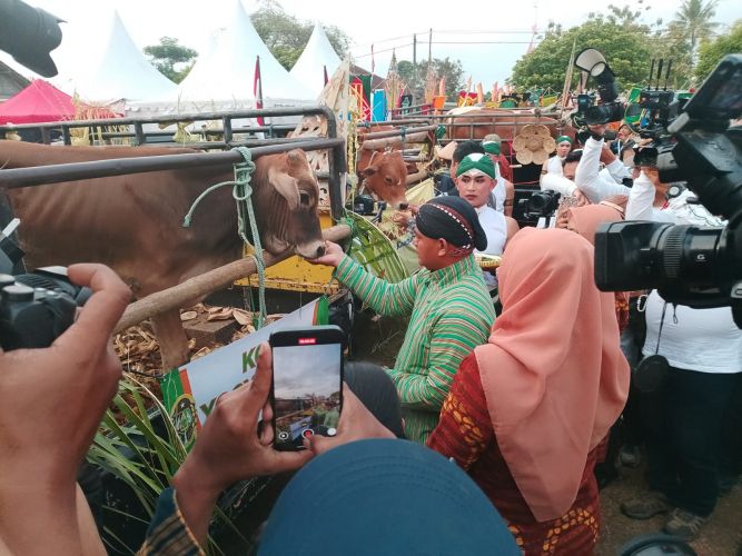 Pernyataan itu terlihat nyata dalam pawai hewan ternak, yang menjadi sorotan pengunjung. Sapi, kambing, hingga kerbau berlenggak-lenggok di jalan desa, menggambarkan kedekatan manusia dengan hewan pekerja di ladang.