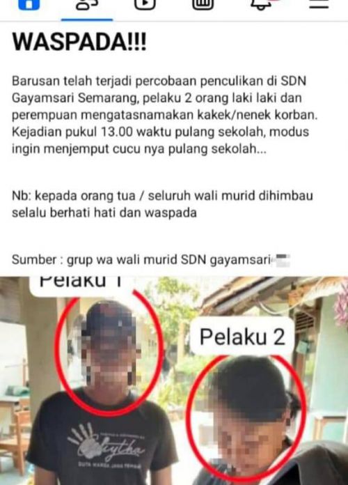 Hoaks Informasi Percobaan Penculikan di Sekolah Dasar di Gayamsari Semarang