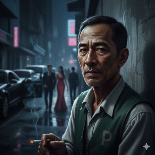 Di sudut lorong, dua satpam klub berdiri sambil merokok. Mereka bicara pelan, tertawa sesekali. Arman tak ikut. Bukan karena tak mau, tapi karena tak pernah diajak. Di dunia malam, setiap orang punya lingkarannya sendiri. Dan tukang parkir berada di lingkar paling luar—cukup dekat untuk melihat, terlalu jauh untuk masuk.