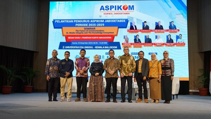 Uwrite.id - JAKARTA — Asosiasi Pendidikan Tinggi Ilmu Komunikasi (ASPIKOM) Koordinator Wilayah Jabodetabek resmi melantik jajaran pengurus baru dalam rangkaian kegiatan bertajuk “The Future of Communication: AI, Media Integrity, and The Knowledge Ecosystem”.