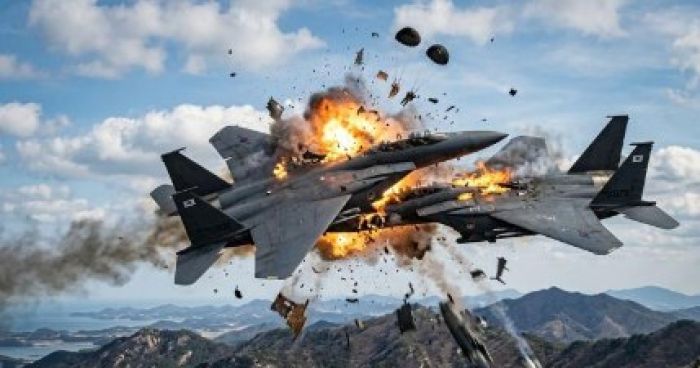 Dua jet tempur itu akhirnya saling menghantam di udara.