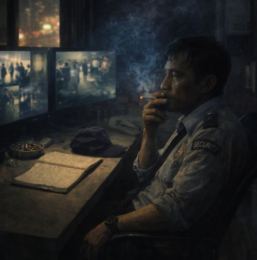 Ia kembali menatap layar. Di sudut kiri, kamera parkiran belakang. Tukang parkir berdiri dekat motor, rokok di tangan. Darto mengenalnya. Tidak dekat, tapi sering bertukar anggukan.