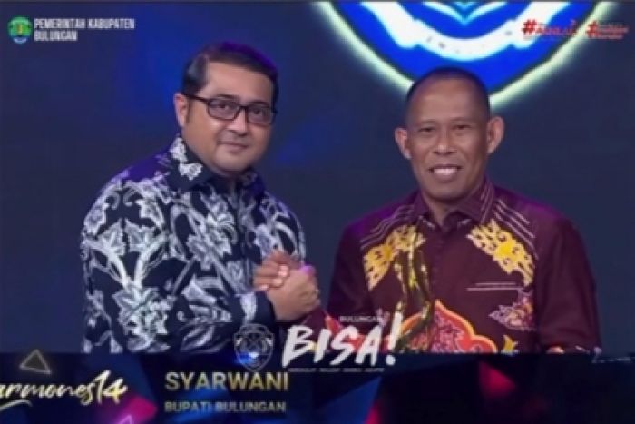 Uwrite.id - Jakarta - Bupati Bulungan, Syarwani, S.Pd, M.Si menerima penghargaan Apresiasi Daerah Peduli Pembangunan UMKM dan Potensi Sumber Daya Lokal pada perayaan HUT ke 14 tahun 2025 Kompas TV pada Kamis malam, di Jakarta.